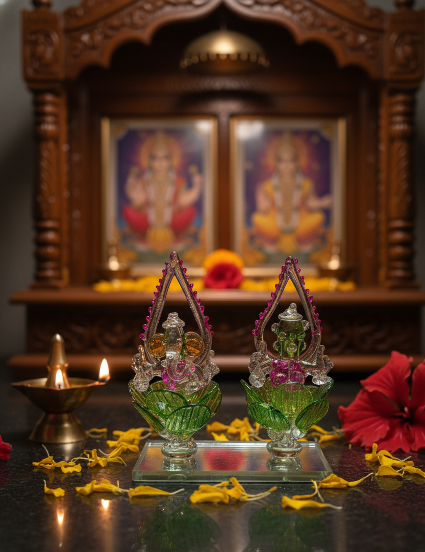 COLORFUL GLASS GANESH &LAKSHMI PAIR